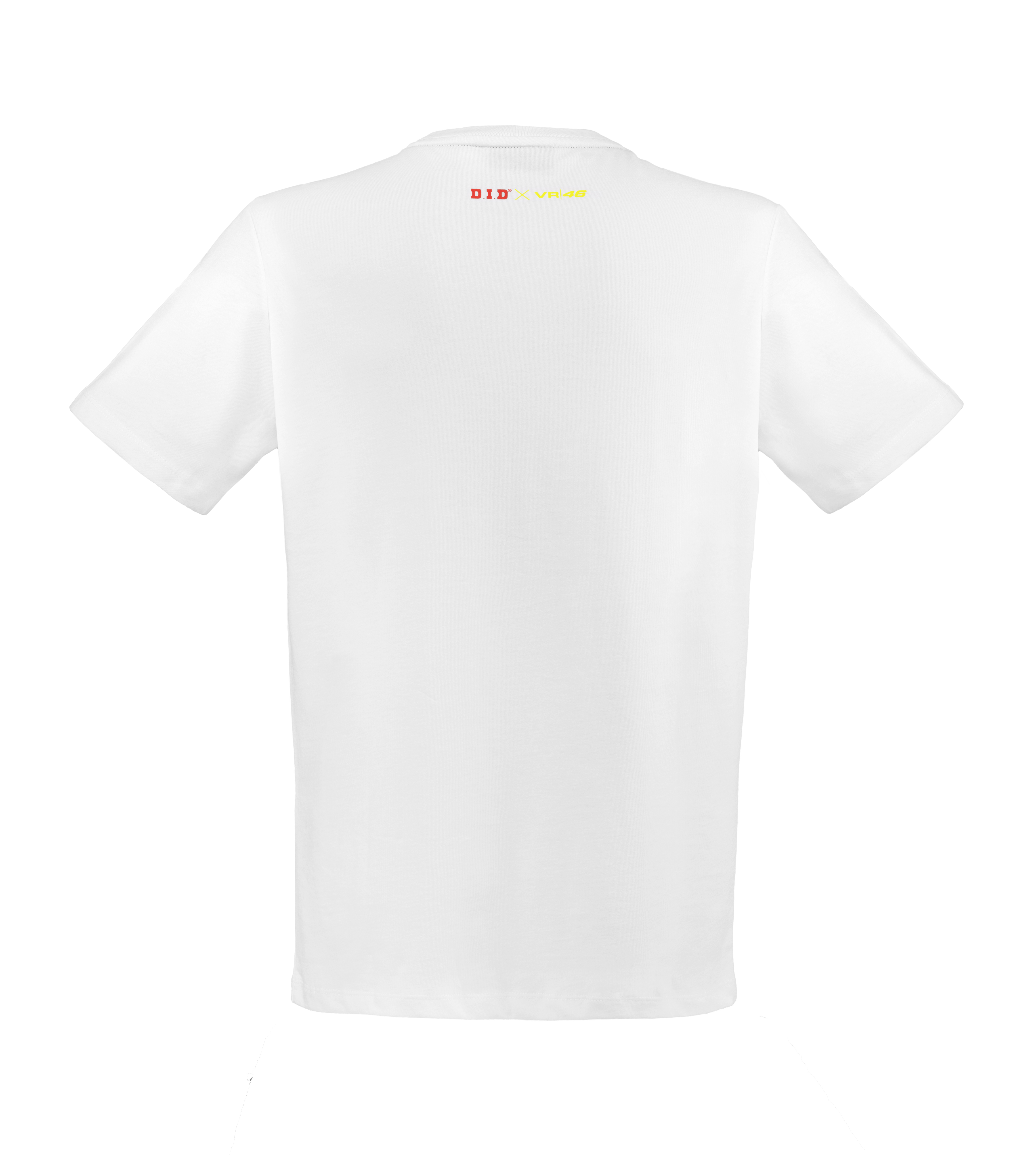 T-shirt bianca a maniche corte appartenente alla linea Sole Luna nata dalla collaborazione tra VR46 e D.I.D. La t-shirt è realizzata in cotone con vestibilità regolare. Sul petto è stampata la grafica Sole Luna di Valentino in giallo, azzurro e blu con il marchio D.I.D X VR46. Sul retro in alto è stampato il marchio D.I.D X VR46 a colori e in piccolo.